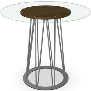 Counter height metal table base with wood veneer (walnut) accent