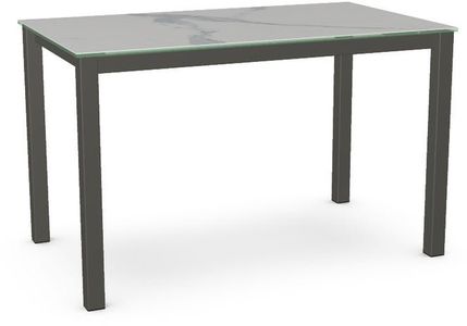 Italian porcelain on a glass tabletop with a Statuario marble finish.