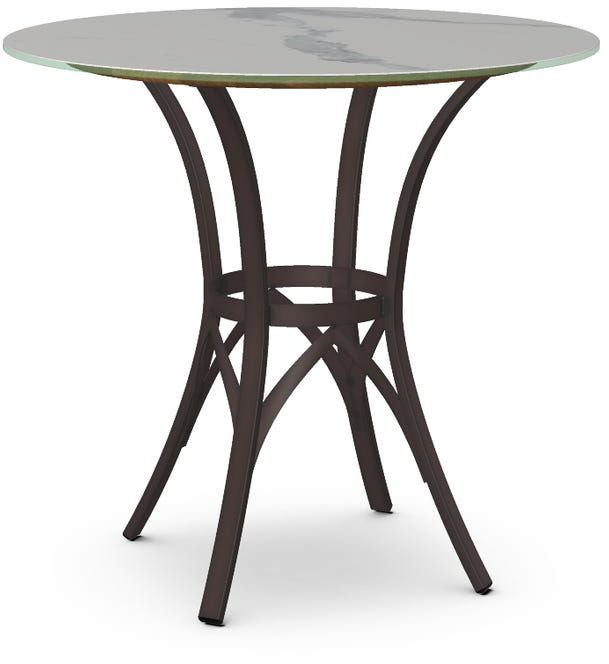Italian porcelain on glass tabletop with a Statuario marble finish and 39" diameter.