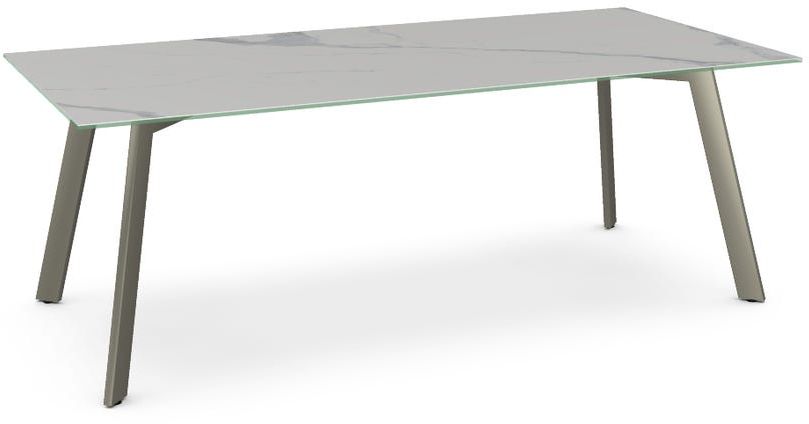 Italian porcelain on glass tabletop with a Statuario marble finish.