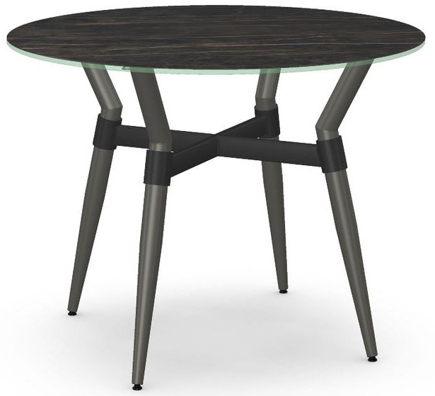 Italian porcelain on glass tabletop with a black marble finish and 39" diameter.