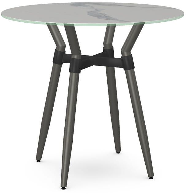 Italian porcelain on glass tabletop with a Statuario marble finish and 39" diameter.