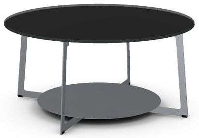 Round, black glass tabletop with a 36" diameter.
