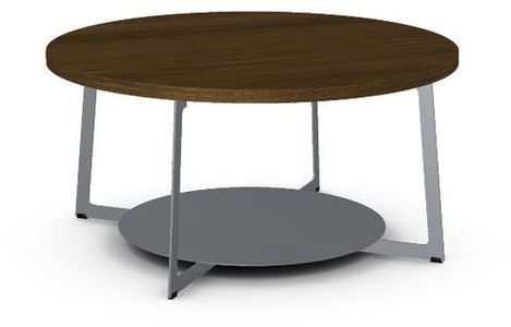 Walnut veneer tabletop with a 36" diameter.