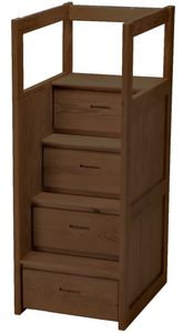 The staircase works well with all CD bunk beds - as well as your existing bunk bed. The staircase can be placed on either end of the bunk bed. Each drawer is the full depth of the cabinet. The bottom drawer rolls out on casters for full access!