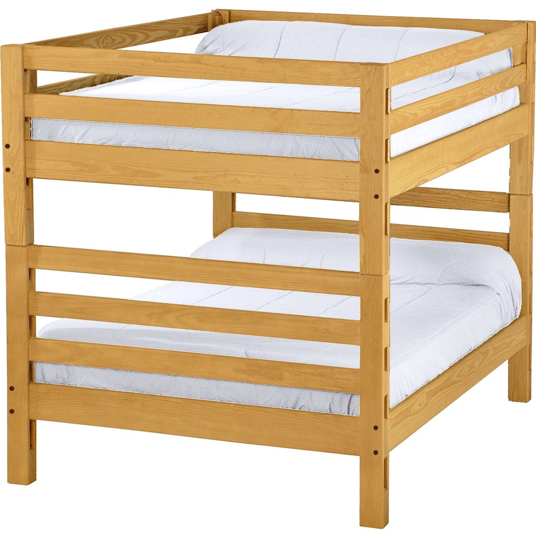 With built-in ladders at both ends, these bunk beds offer a cleverly built compact design to save you even more space. The sturdy, wide ladder ends make it easy for kids to climb up and down. Full length removable guardrails are included for both sides of the upper bed. The top of an 8” thick mattress will be 21" off the floor on the lower bed and 65” off the floor on the upper bed. All bunk beds and beds have been tested to accommodate over 450 pounds and are recommended for adult use. Add optional drawers or a trundle bed for maximum use of your floor space