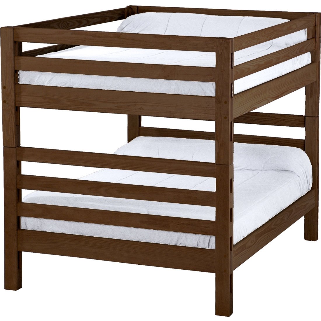 With built-in ladders at both ends, these bunk beds offer a cleverly built compact design to save you even more space. The sturdy, wide ladder ends make it easy for kids to climb up and down. Full length removable guardrails are included for both sides of the upper bed. The top of an 8” thick mattress will be 21" off the floor on the lower bed and 65” off the floor on the upper bed. All bunk beds and beds have been tested to accommodate over 450 pounds and are recommended for adult use. Add optional drawers or a trundle bed for maximum use of your floor space