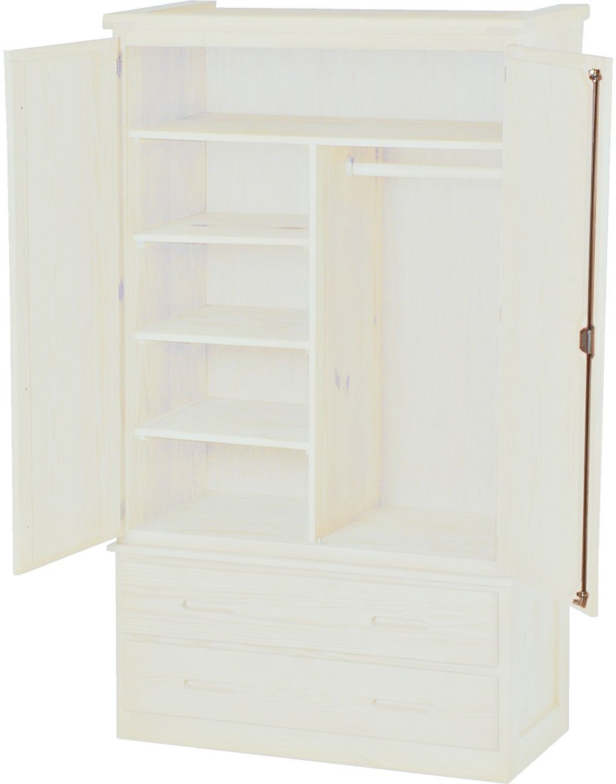 Full width hanging space and a storage shelf plus locking doors.This unit can be separated into top and drawer unit for difficult installations.