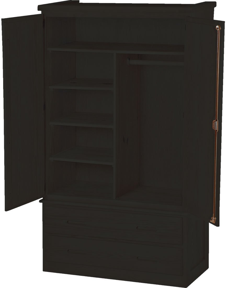 Full width hanging space and a storage shelf plus locking doors.This unit can be separated into top and drawer unit for difficult installations.Read More