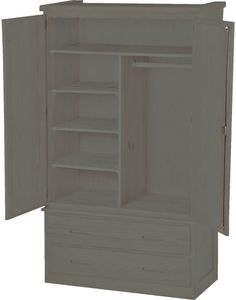 Full width hanging space and a storage shelf plus locking doors.This unit can be separated into top and drawer unit for difficult installations.Read More
