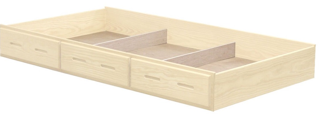 The trundle drawer rolls out easily on 4 casters. You can use it under any CD bed for convenient storage or as an extra bed. 2 dividers can be easily removed to accommodate a mattress. Maximum mattress size is 38" wide x 8" high x 73" long (78" long in the extra-long model). Premier, Trundle and HealthCare mattresses will fit.