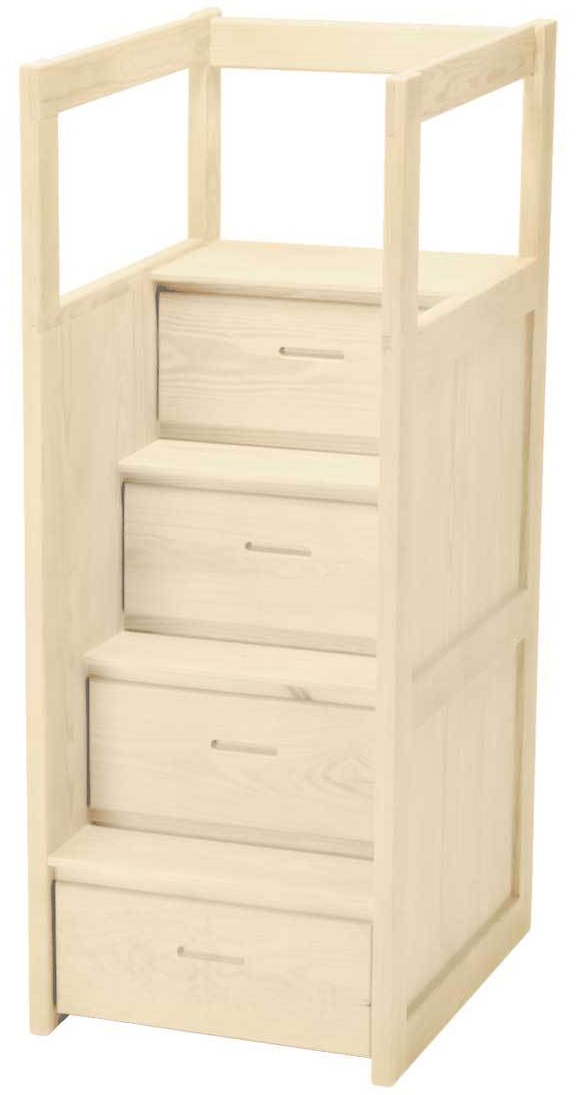The staircase works well with all CD bunk beds - as well as your existing bunk bed. The staircase can be placed on either end of the bunk bed. Each drawer is the full depth of the cabinet. The bottom drawer rolls out on casters for full access!