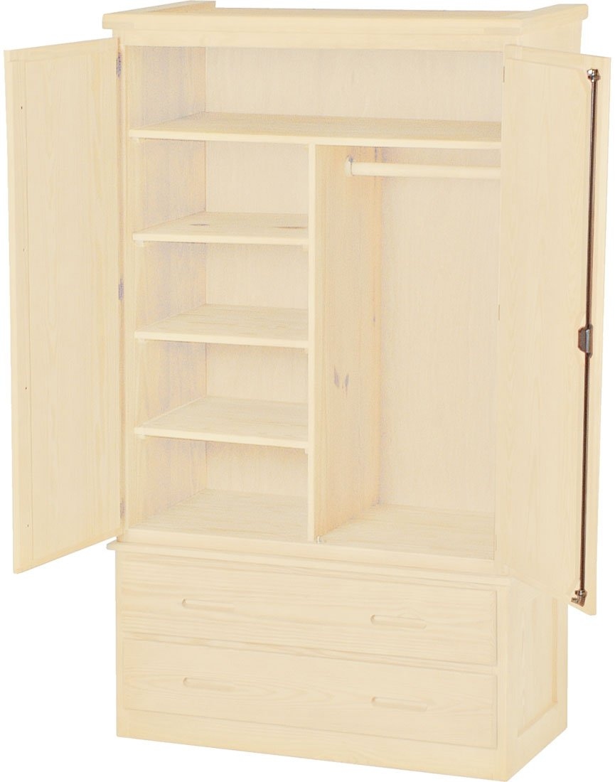 Full width hanging space and a storage shelf plus locking doors.This unit can be separated into top and drawer unit for difficult installations.