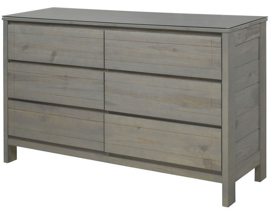 The WildRoots collection incorporates the wildest characteristics of Southern Yellow Pine to bring you a fresh new look in bedroom furniture. Easy to care for tempered glass tops are included on the dresser, chests and night table. Crate Designs combines solid wood with mortise and tenon joinery and dovetailed drawers to guarantee you lifetime durability.