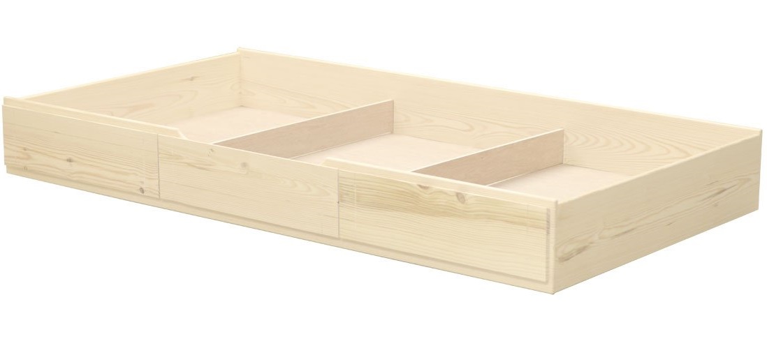 The WildRoots collection incorporates the wildest characteristics of Southern Yellow Pine to bring you a fresh new look in bedroom furniture. The WildRoots trundle drawer rolls out easily on 4 casters. You can use it under any CD bed for convenient storage or as an extra bed. 2 dividers can be easily removed to accomodate a mattress. Maximum mattress size is 38" wide x 8" high x 73" long (78" long in the extra-long model). Premium, Trundle and HealthCare mattresses will fit. Extra-long - suits queen, king and XL beds