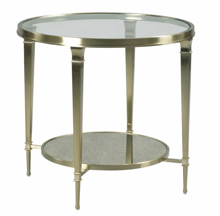 The Galerie Round End Table has a metal base with a glass top, and an antique mirrored shelf. Some assembly is required.Read More