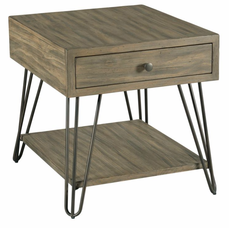 The Sanbern Rectangular Drawer End Table is made of Thick Pine Veneers and hardwood solids with metal legs. It has one drawer and one shelf. Some assembly is required.Read More