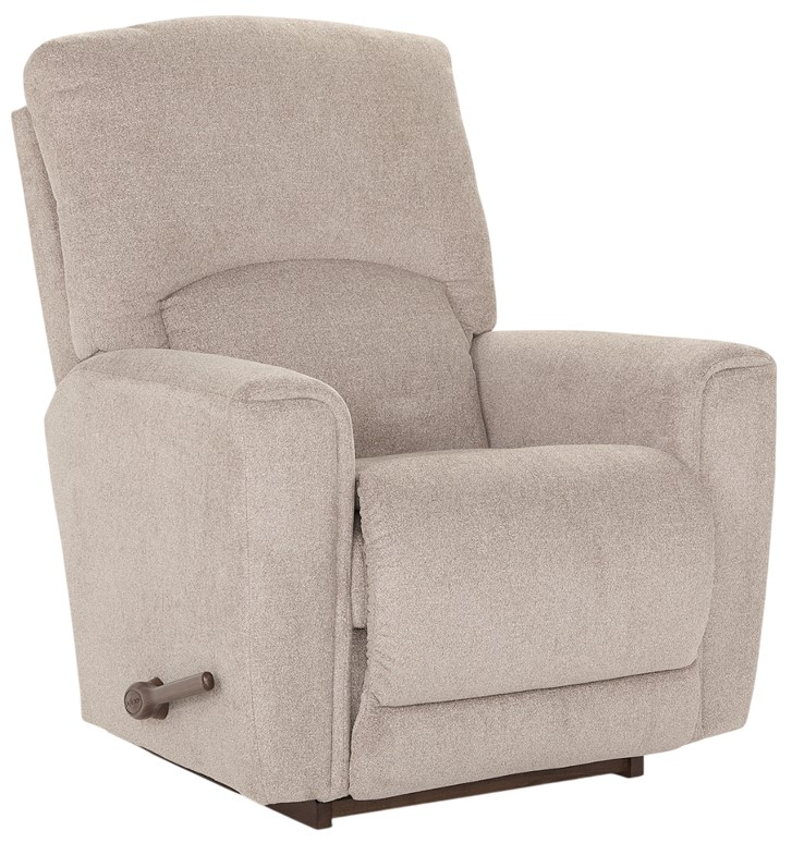 Lush casual comfort has a refined design in the Cassian rocking recliner. Gently padded tapered arms border a cushy back with an inset lumbar cushion. A smooth chaise seat and leg rest lift and the back reclines for lounging. Or simply rock and relax.Read More