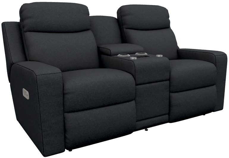 The La-Z-Boy® Emmons Storm Power Reclining Loveseat with Console, Headrest, and Lumbar offers exceptional comfort with sleek storm-gray upholstery. It features power reclining seats, adjustable headrests, lumbar support, and a center console with storage and cupholders. It makes it the perfect blend of style and functionality for any living space.Read More
