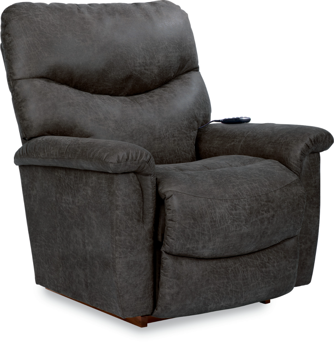 The James Power Rocking Recliner with Headrest has a sculpted-bucket chaise seat and legrest create a continuous zone of comfort in the reclining position. This updated model features a side-mounted control panel that allows you to adjust the back, legrest, headrest and lumbar for an unlimited number of relaxing positions. Plus, a USB charging port and two memory settings that save your favorite reclining positions. When you’re not reclining, it’s a relaxing rocker with a smooth, graceful motion.