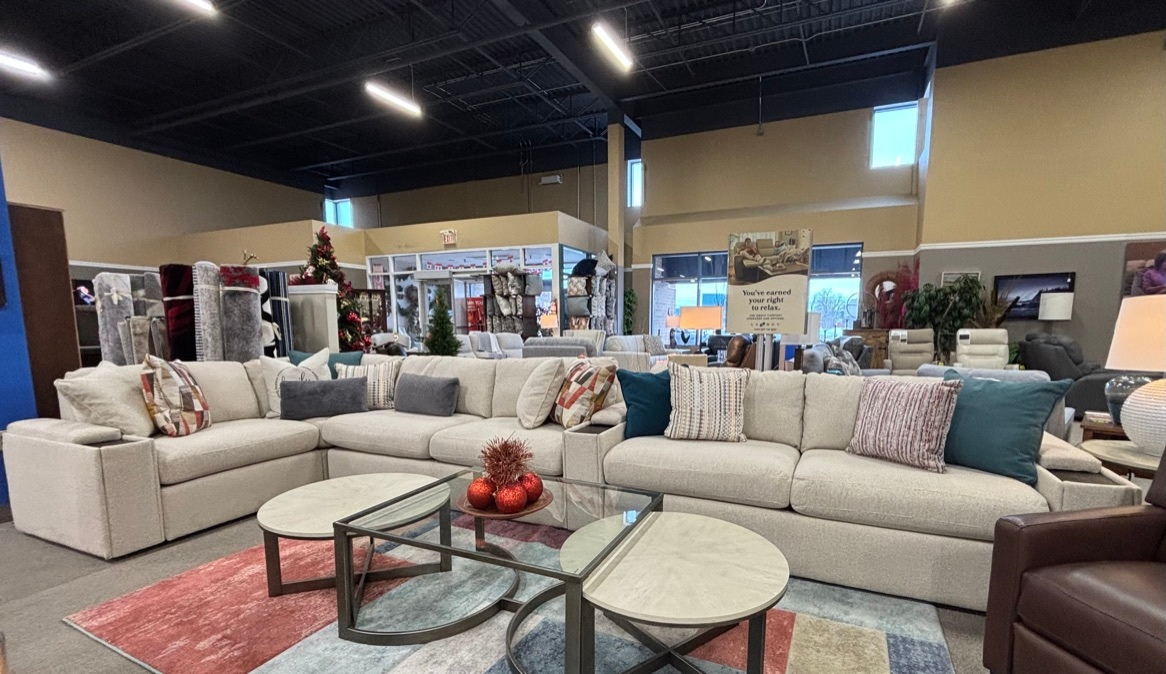 Boldly modern sectional sofa with convenient extras Simple lines create a sophisticated foundation for cool, cozy style and utility Loose, chambered blown-fiber back cushions provide a comfy, casual look Elongated box-border seat cushions add sleek horizontal structure and comfort Broad track arms make a cool aesthetic statement while concealing extra function Track arms provide hidden wireless charging, electrical outlets, charging ports and storage