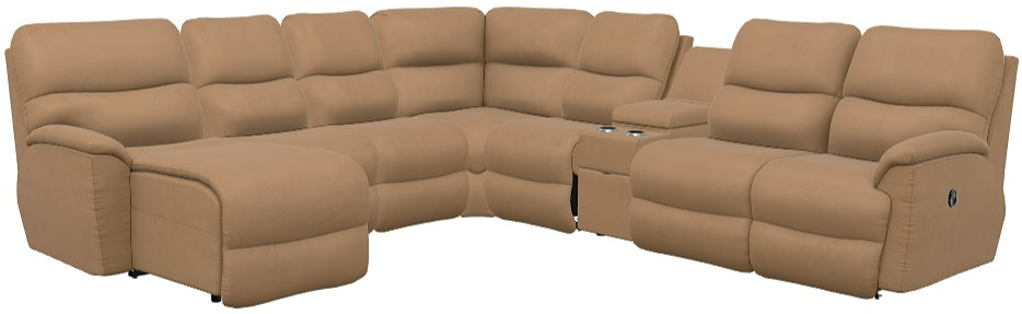 Turn casual evenings into cozy family nights with our Trouper sectional. Sink into one of the sculpted bucket seats and let the split back cushions provide soft support for your head, neck and lumbar region. Adjust the back and chaise legrest for personalized reclining comfort, or lean back without raising your feet.Read More