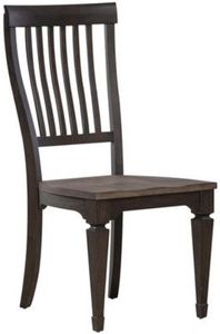 Sitting pretty with the Allyson Park slat back side chair. Crafted of rubberwood solids, this chair features a wire-brushed ember gray seat in contrast to the wire-brushed black forest frame that has brown undertones. The seat has saddle contouring for added comfort.Read More