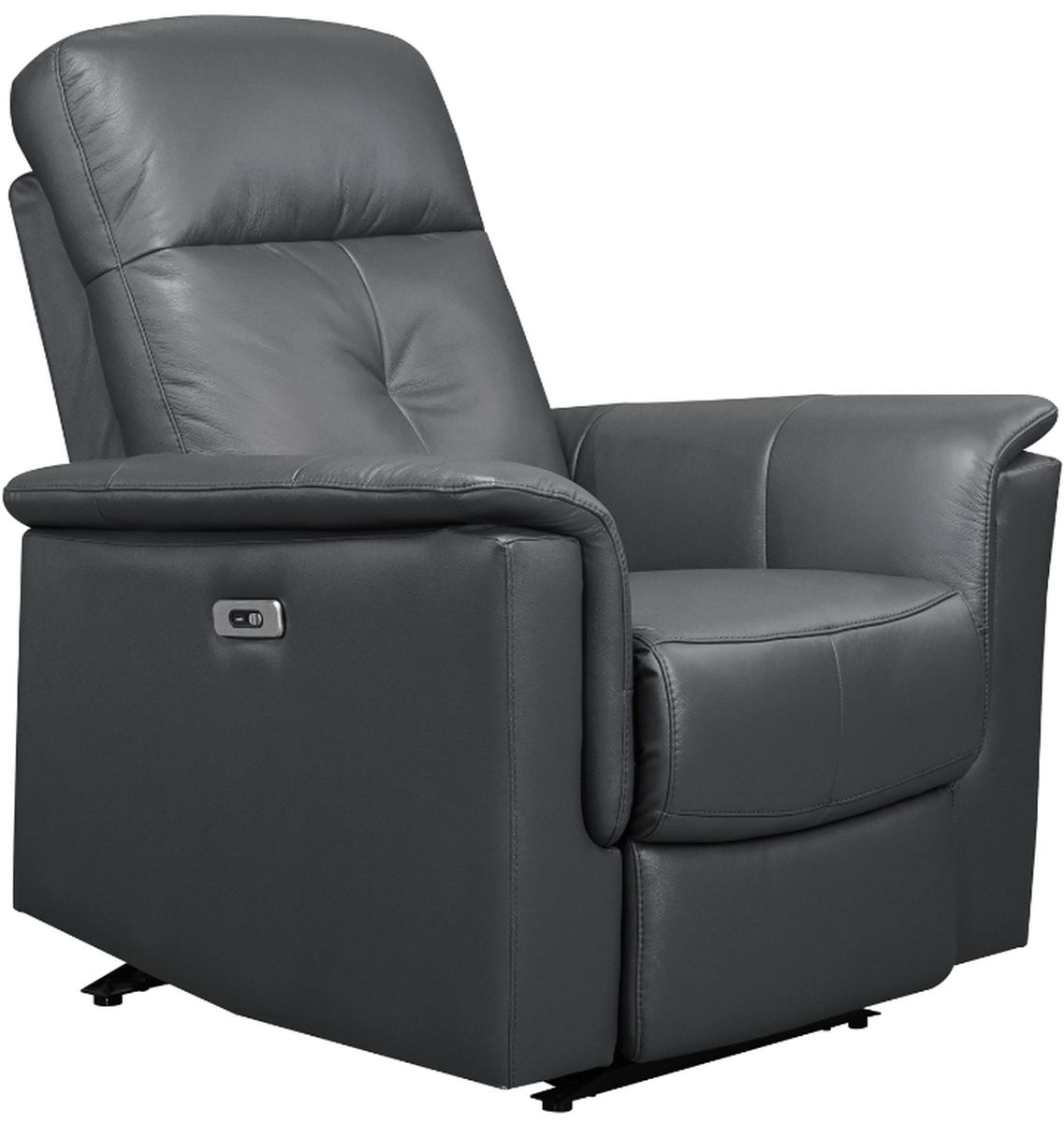 Tasteful dark grey top grain leather upholstery with faux leather-match covers the chair, providing a debonair compromise that looks and feels elegant precisely where it counts the most, all while perfectly complementing your home’s décor with its tailored touches.