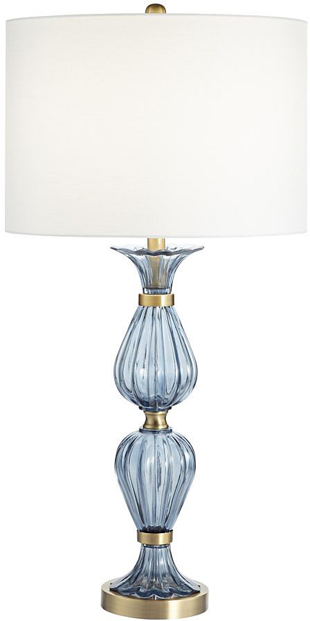 The Pacific Coast® Lighting Chateau Ariel Blue Table Lamp features a blue glass body with metal accents and a white faux silk shade.Read More