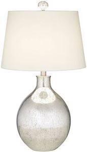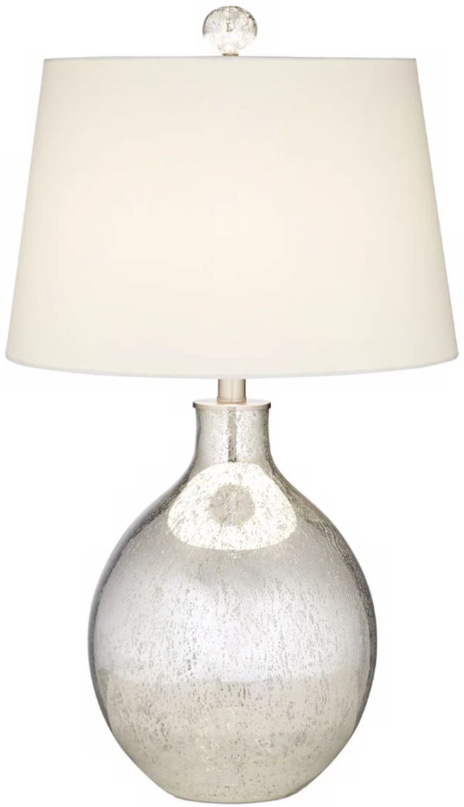 Metallic dawn antique mercure table lamp is made of glass. The lamp shade is made out of faux silk fabric in a beige color. Adds a graceful transitions style.Read More