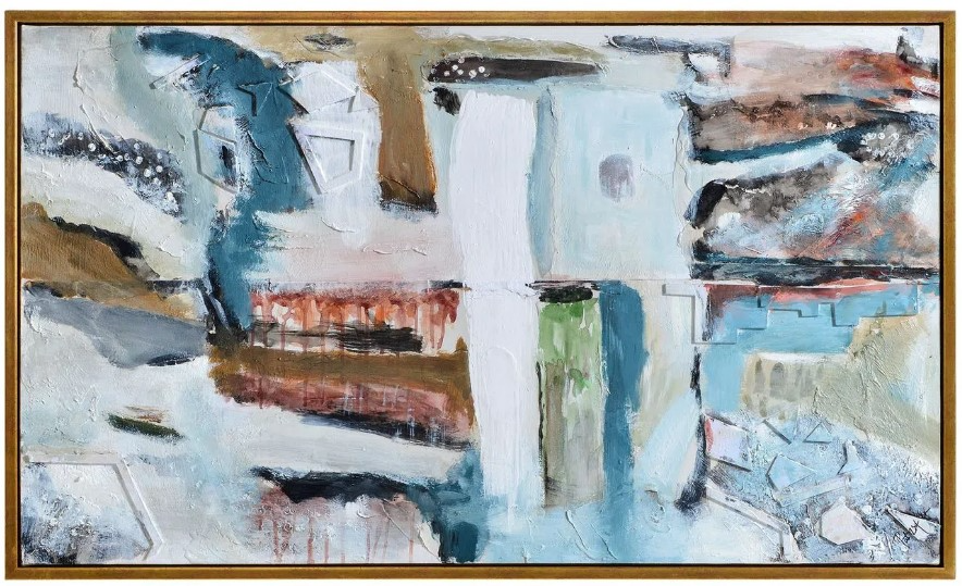 This canvas art painting breathes new life into home interiors with its vibrant colors and textures. Adding complexity and dimension to living rooms, dining rooms, or entryways, it's versatile and captivating. Framed in antique brass, it seamlessly complements mid-century modern and contemporary spaces alike.Read More