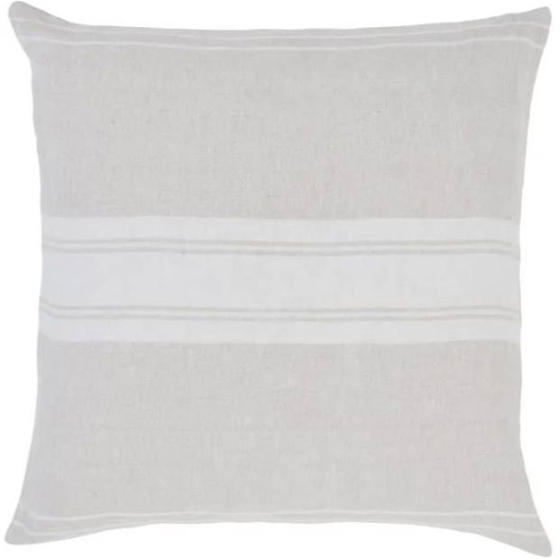 Composed of linen with natural and cream colors and subtle strip details, it is at its best when set amid soft complementary elements.