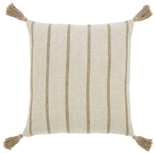 Tassels and stripes take this natural brown throw pillow design to the next level and infuse any interior it enters with charm. Thanks to its versatile square size, this decorative pillow can be placed alone on a seat or bed or arranged with other pillows of differing sizes.Read More