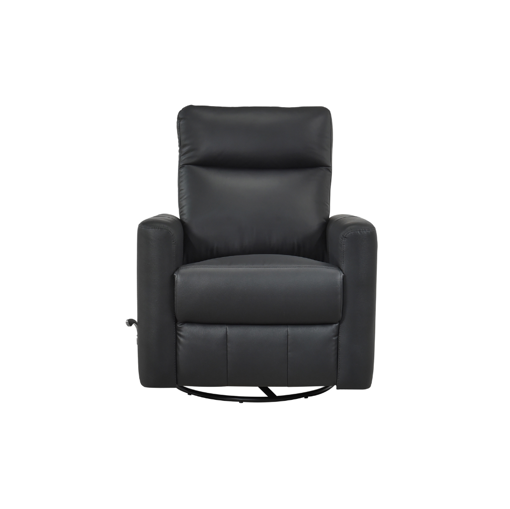 The Figaro Collection delivers non-stop comfort in a stylish package. With its trim and compact profile, you'll have no trouble placing this modern recliner anywhere you please in your living room, and you'll even have room to stretch out and recline once you pull on the sleek chrome-finished lever. Wrapped in buttery soft leather in all the places that touch your skin and high quality PVC leather-match on the sides and back, this seat makes your downtime feel downright luxurious, especially thanks to the gentle motion of the glider mechanism and the 360-degree swiveling function. Finished in a classic black hue with subtle stitch accents and generous padding in the back and seat cushions, the Figaro offers your home a taste of the good life.Read More