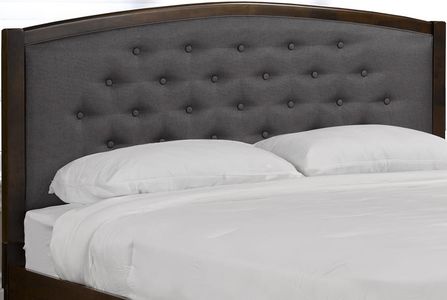 Clean lines and neutral colour ensure this headboard will fit within your bedroom design. With a button tufted, grey linen inlay and a dark walnut finish, you'll be sure to add a bit of sophistication to your bedroom. Headboard easily attaches to most beds.Read More